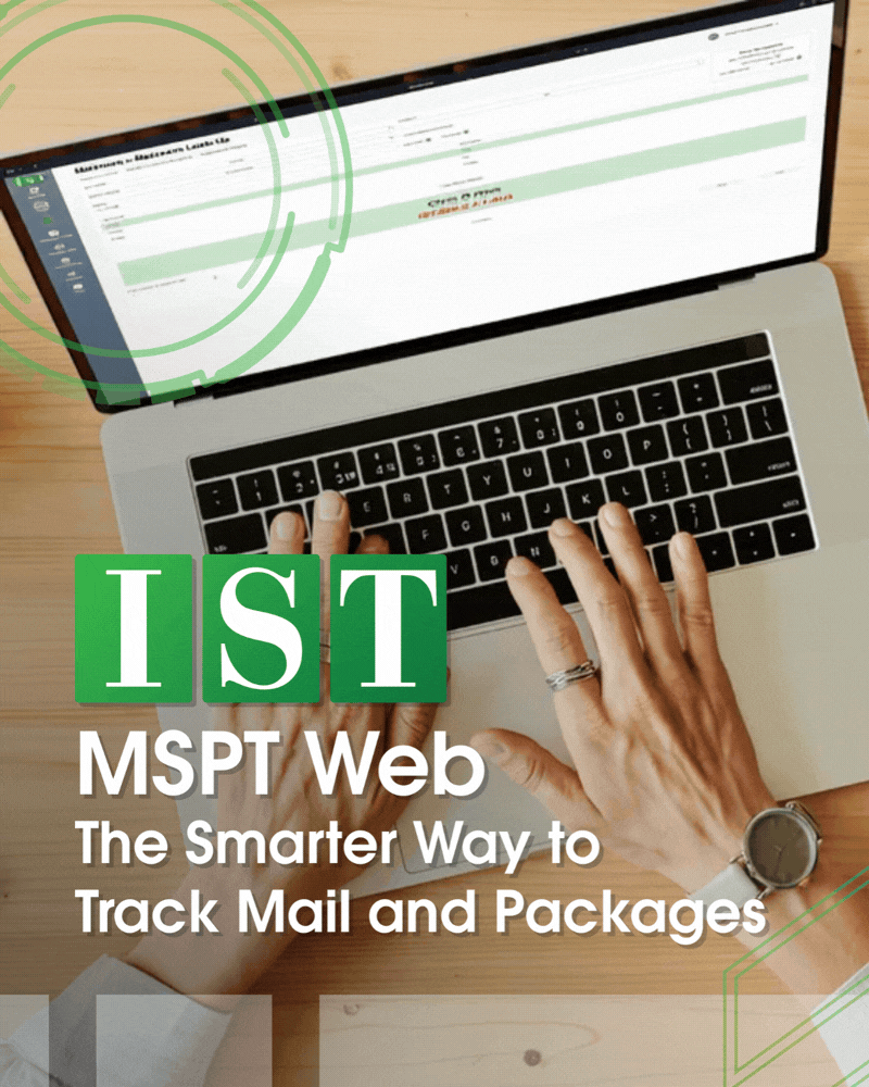At IST innovation is not only about technology. It is about creating smarter ways for our clients to operate. For almost three decades, IST has been delivering mail, office, and administrative support solutions designed around efficiency, accuracy, and people-first service. Today, we are proud to hold the industry-leading platform: MSPT Web, a fully web-based version of Mail Sort Package Track.